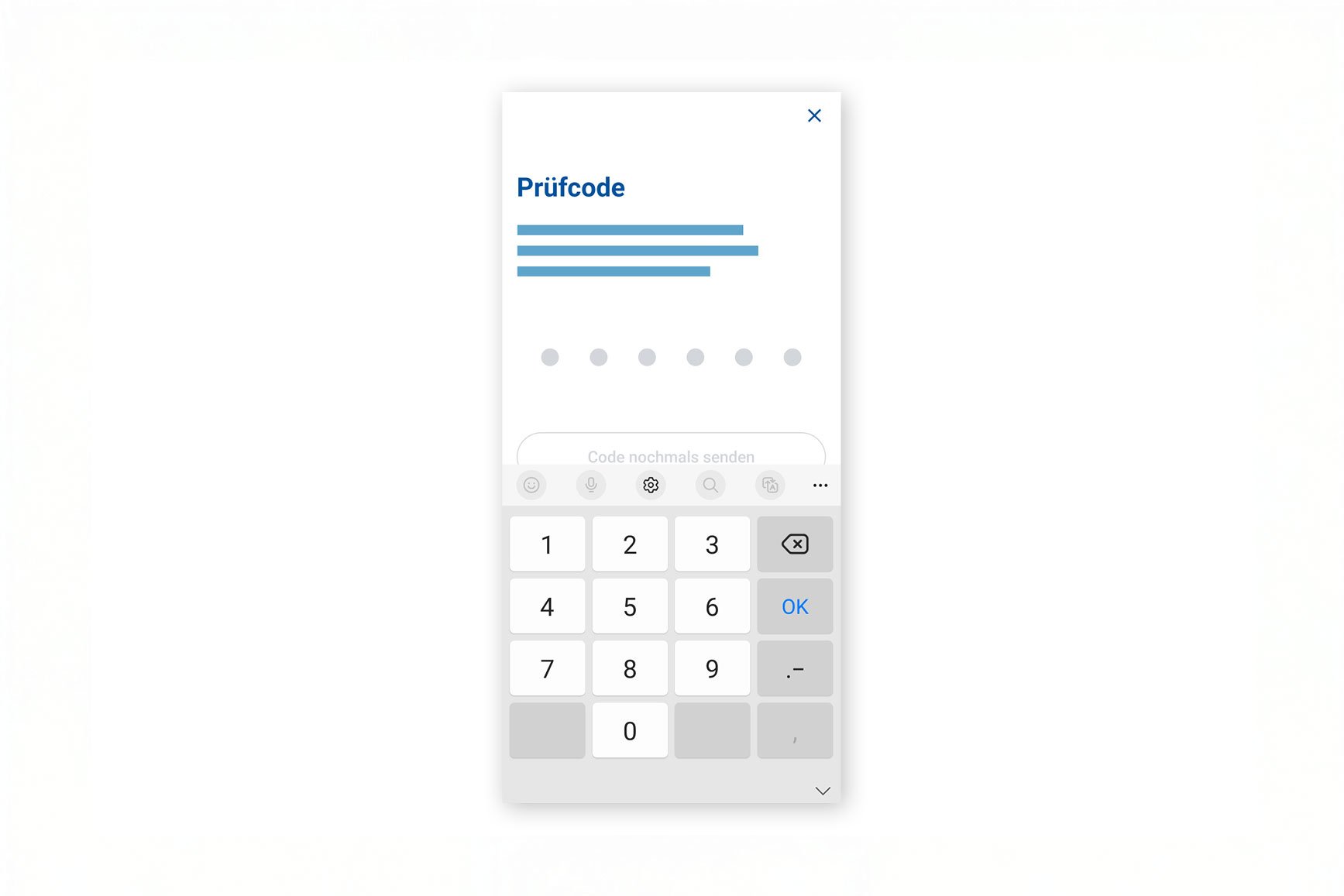 Per SMS erhalten Sie einen Prüfcode. Bitte tragen Sie diesen in der GKB Mobile Banking App ein.