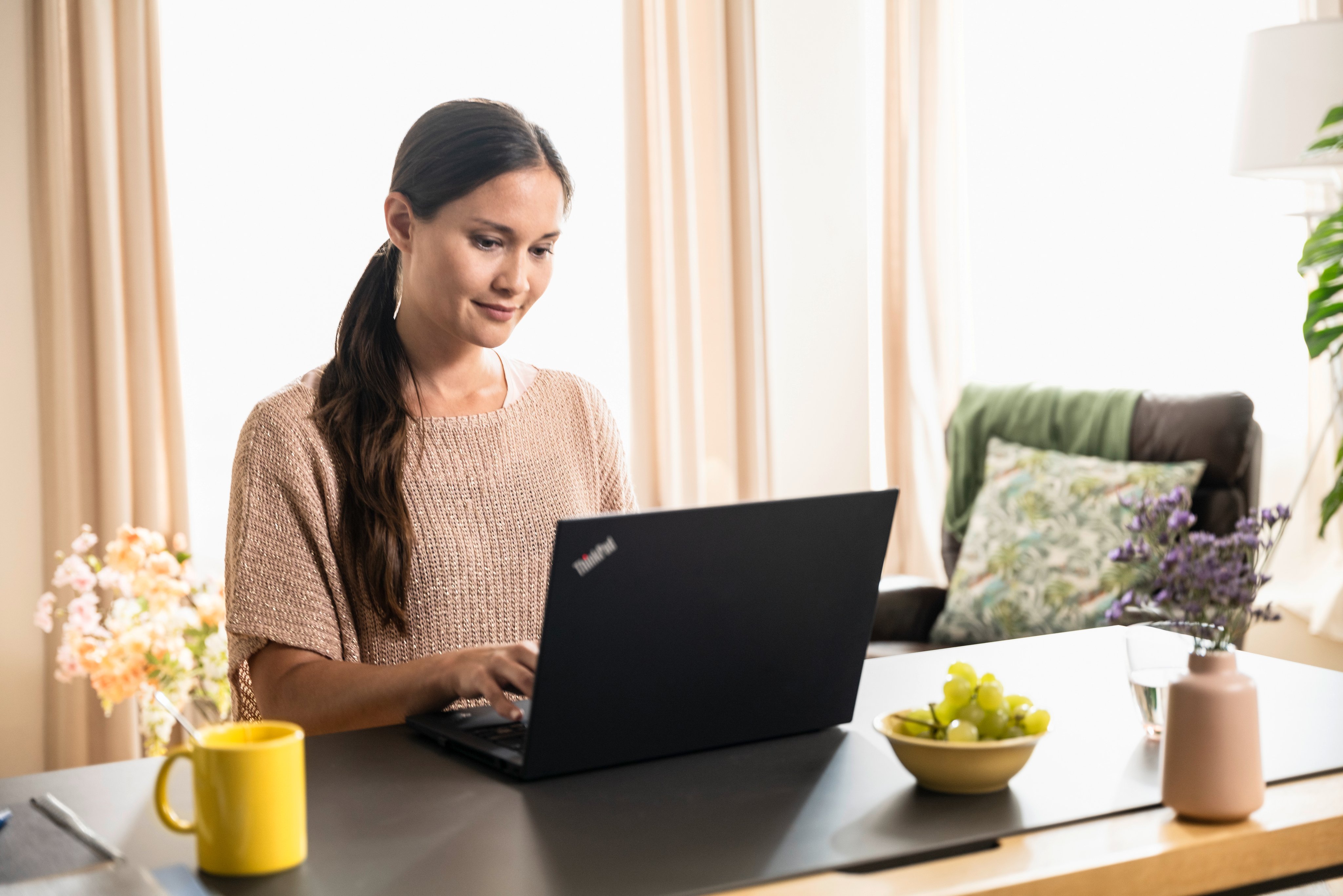 Frau am Laptop in der Wohnung