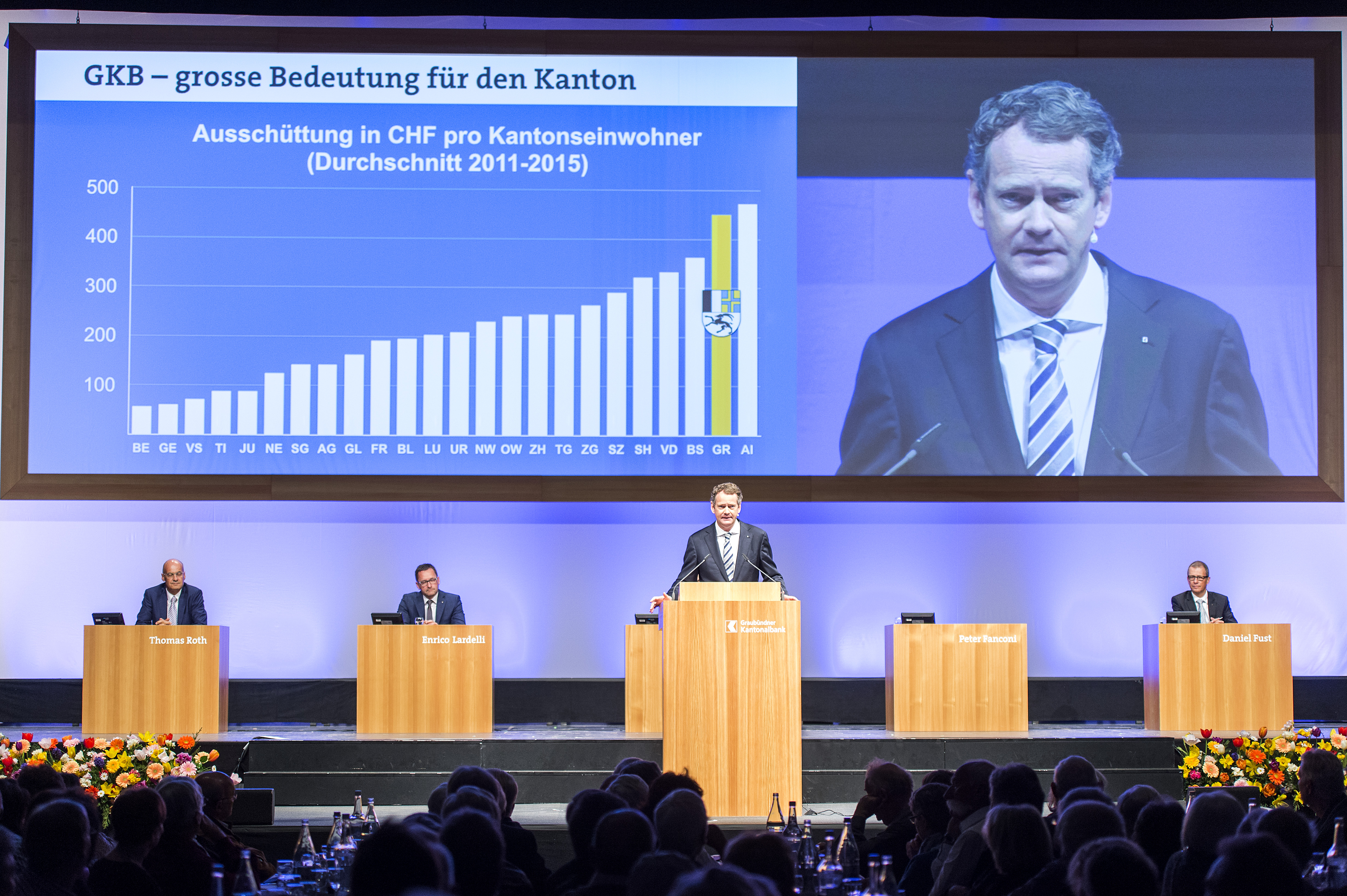 Jedes Jahr besuchen ein Drittel aller Partizipantinnen und Partizipanten die PS-Versammlung der Graubündner Kantonalbank. Den bis zu 3000 Gästen bietet sich damit die Möglichkeit, ihre Bank aus der Nähe zu erleben. Für die GKB wiederum ist dies eine willkommene Gelegenheit, ihren Kundinnen und Kunden sowie ihren Investoren für ihre langjährige Treue und Verbundenheit zu danken.