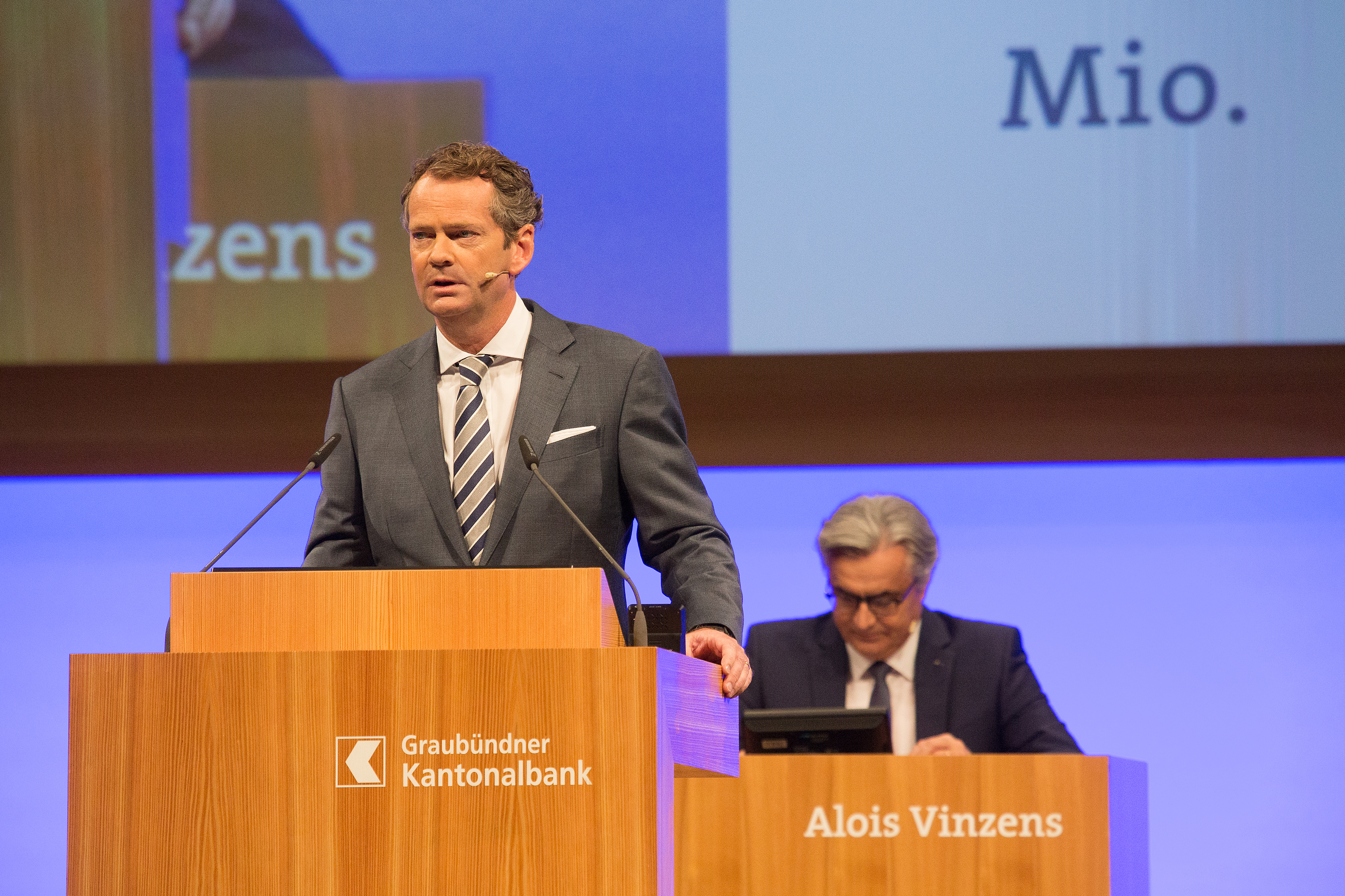 «Die Bank verzeichnete Wachstum in allen Geschäftsbereichen», stellte CEO Alois Vinzens zufrieden fest. Dies ermögliche Investitionen in die Zukunft und letztlich auch das vielfältige Engagement der Bank in Graubünden. «Im Berichtsjahr stellte die Bank 3.2 Millionen Franken für kulturelle, wirtschaftliche, sportliche oder gemeinnützige Projekte zur Verfügung», wies Vinzens auf das GKB Engagement über den Beitragsfonds, die Sponsoring- und Kunstförderungsaktivitäten und die bankeigene Freiwilligenarbeit hin. Die Bank verfüge über eine breite Kundenbasis, eine überdurchschnittliche Risikotragfähigkeit und eine hohe Kundenorientierung. Das sei eine gute Ausgangslage zur Bewältigung der Zukunft. Auch im laufenden Jahr werde wieder ein gutes Geschäftsergebnis erwartet, schloss CEO Alois Vinzens seine Ausführungen.