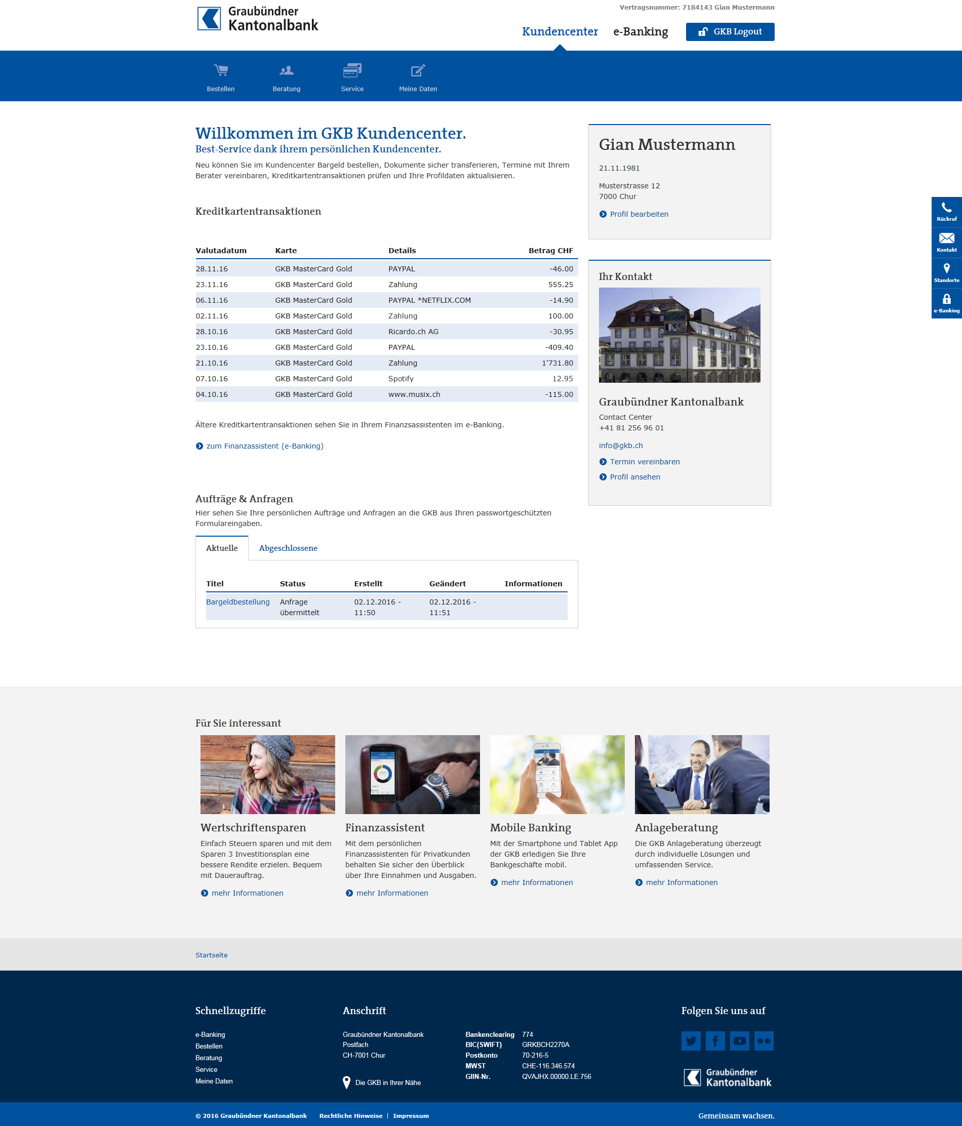 Kundinnen und Kunden der Graubündner Kantonalbank (GKB) konnten dieses Jahr bereits von einigen digitalen Entwicklungen profitieren. Das neue Kundencenter fügt sich nahtlos in diese Reihe ein.