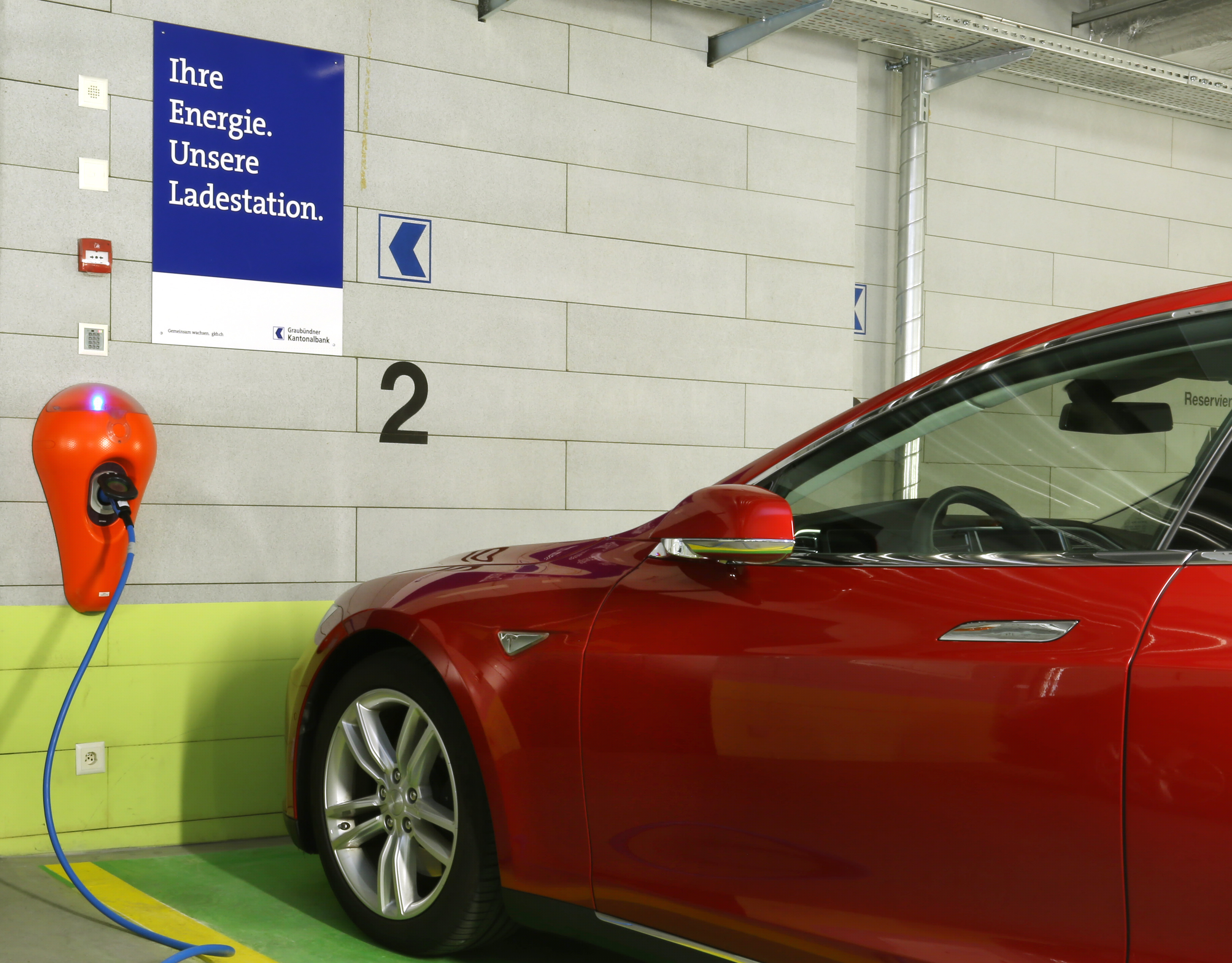 Mit der neuen Ladestation für Elektrofahrzeuge in der Tiefgarage beim Hauptsitz am Postplatz in Chur leistet die Graubündner Kantonalbank einen Beitrag zur Förderung der Elektromobilität. Kundinnen und Kunden können während des Bankbesuches kostenlos ihr Fahrzeug aufladen. Der Strom kommt aus erneuerbaren Energiequellen, denn die GKB bezieht ihren Strom zu 100 Prozent aus einheimischer Wasserkraft.