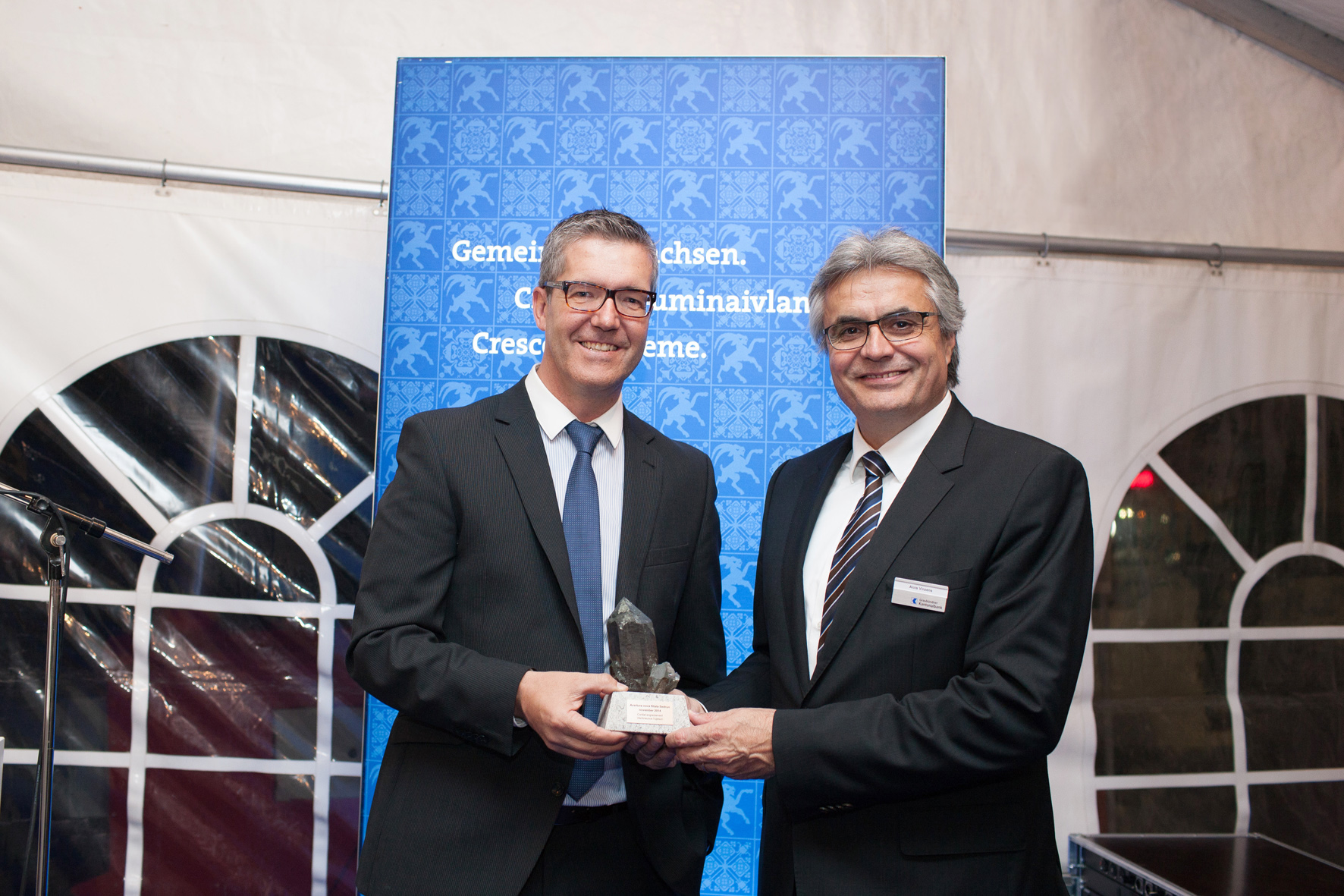 Die neue GKB Sedrun ist Montag bis Freitag von 8.30 bis 12 Uhr und von 14 bis 17.30 Uhr geöffnet. Für eine umfassende Kundenbetreuung sorgen zwei Mitarbeitende. «Die moderne Architektur und die zeitgemässe Innenausstattung bieten optimale Voraussetzungen für eine kompetente und bedürfnisgerechte Beratung unserer Kundinnen und Kunden», betont Christian Alig, Leiter Region Ilanz. Für Geldbezüge und weitere Dienstleistungen rund um die Uhr steht eine 24-Stunden-Zone mit Bancomat zur Verfügung. Blickfang in der grosszügig gestalteten Kundenhalle ist ein eindrücklicher Bergkristall. Der seit über 40 Jahren tätige einheimische Strahler Dosi Venzin hat der GKB diesen spektakulären Fund als Leihgabe zur Verfügung gestellt.