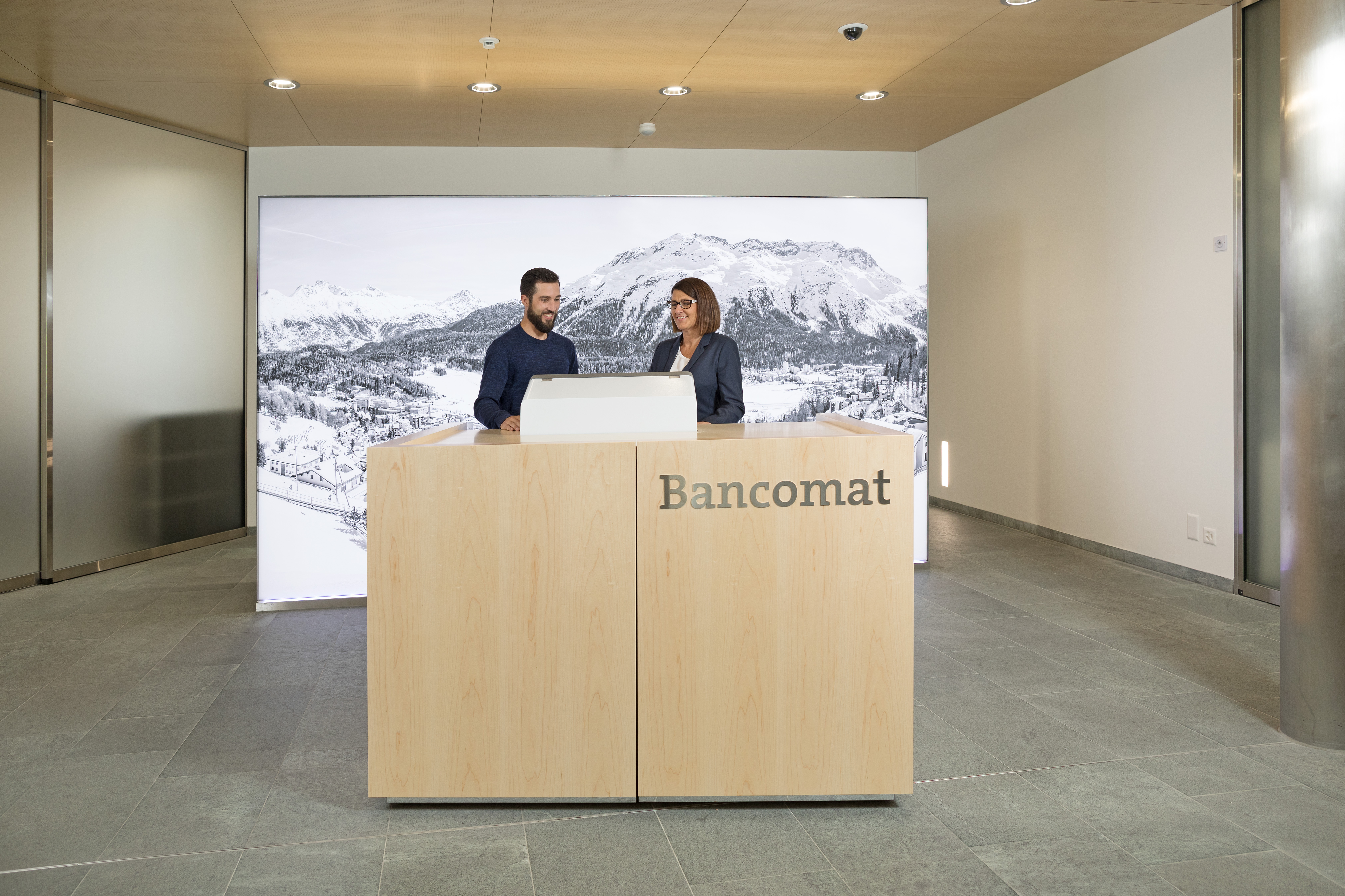 Für einfache Bankgeschäfte stehen am Regionalsitz in St. Moritz Multifunktionsgeräte zur Verfügung. Möglich sind Ein- und Auszahlungen in Schweizer Franken und Euro mit wählbarer Notenstückelung, Kontoüberträge sowie Kontostandabfragen. Bei Bedarf unterstützen die Berater Kundinnen und Kunden bei der Bedienung. Ausserhalb der Öffnungszeiten sind die Automaten in der 24-Stunden-Zone zugänglich.