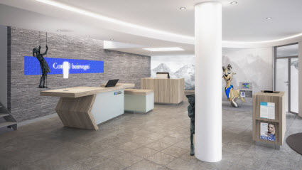 Visualisierung der neuen Kundenhalle am GKB Regionalsitz in Ilanz. Eröffnung ist am 22. Mai 2017.