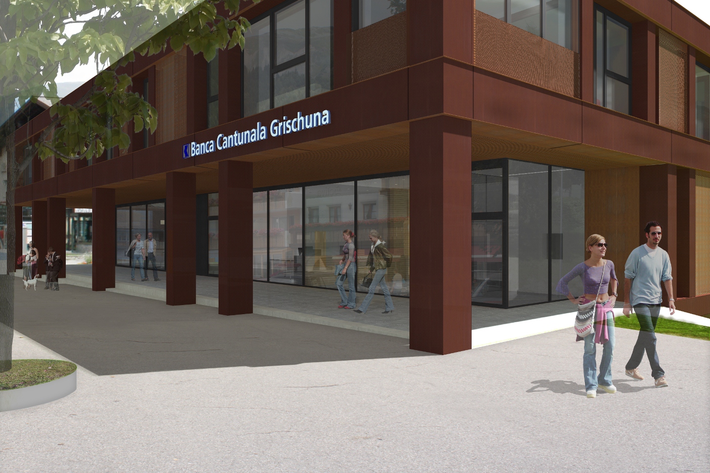 Nebst der neuen Bank entstehen im Dorfzentrum ein offenes Empfangs- und Infocenter für Gäste sowie sechs 4 ½ Zimmer-Wohnungen, die verkauft oder vermietet werden. Das ganze Gebäude wird im Passivhausstandard Minergie-P erstellt. Geplanter Baubeginn ist diesen Frühling. Realisiert wird das Projekt durch die maurusfrei partner AG aus Chur.