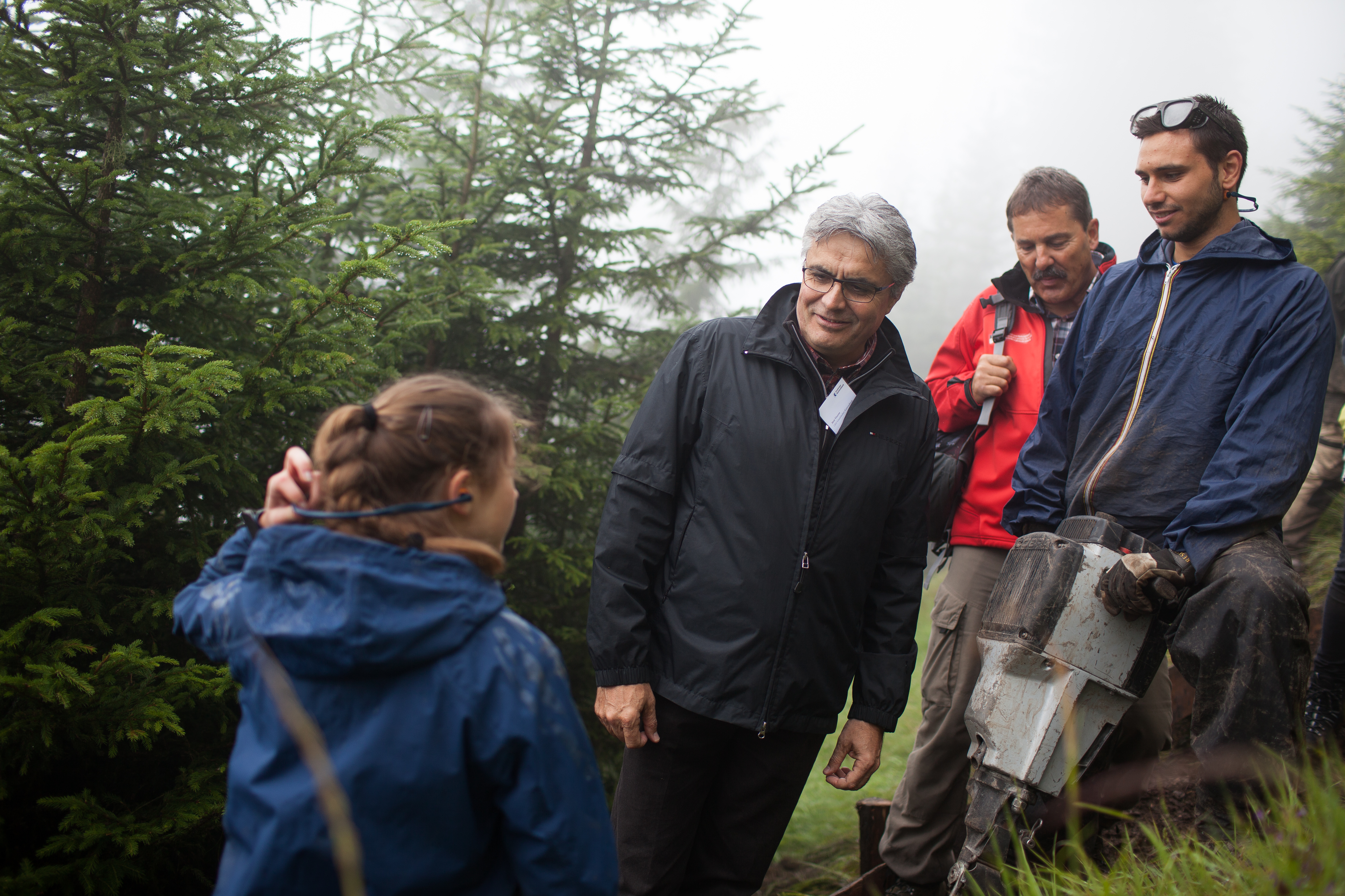 Im Rahmen des GKB Sommerprojekts 2014 sind seit Montagmorgen 15 Jugendliche im Schutzwald oberhalb von Trin tätig. Unter fachlicher Aufsicht leisten die Jugendlichen einen aktiven Beitrag zur Erhaltung des Bergwaldes. Am heutigen Medientag informierten Alois Vinzens, CEO der Graubündner Kantonalbank, Kantonsförster Reto Hefti, der Gemeindepräsident von Trin Stefan Cahenzli und Revierförster Christian Malär über die Idee und den Stand der Arbeiten.