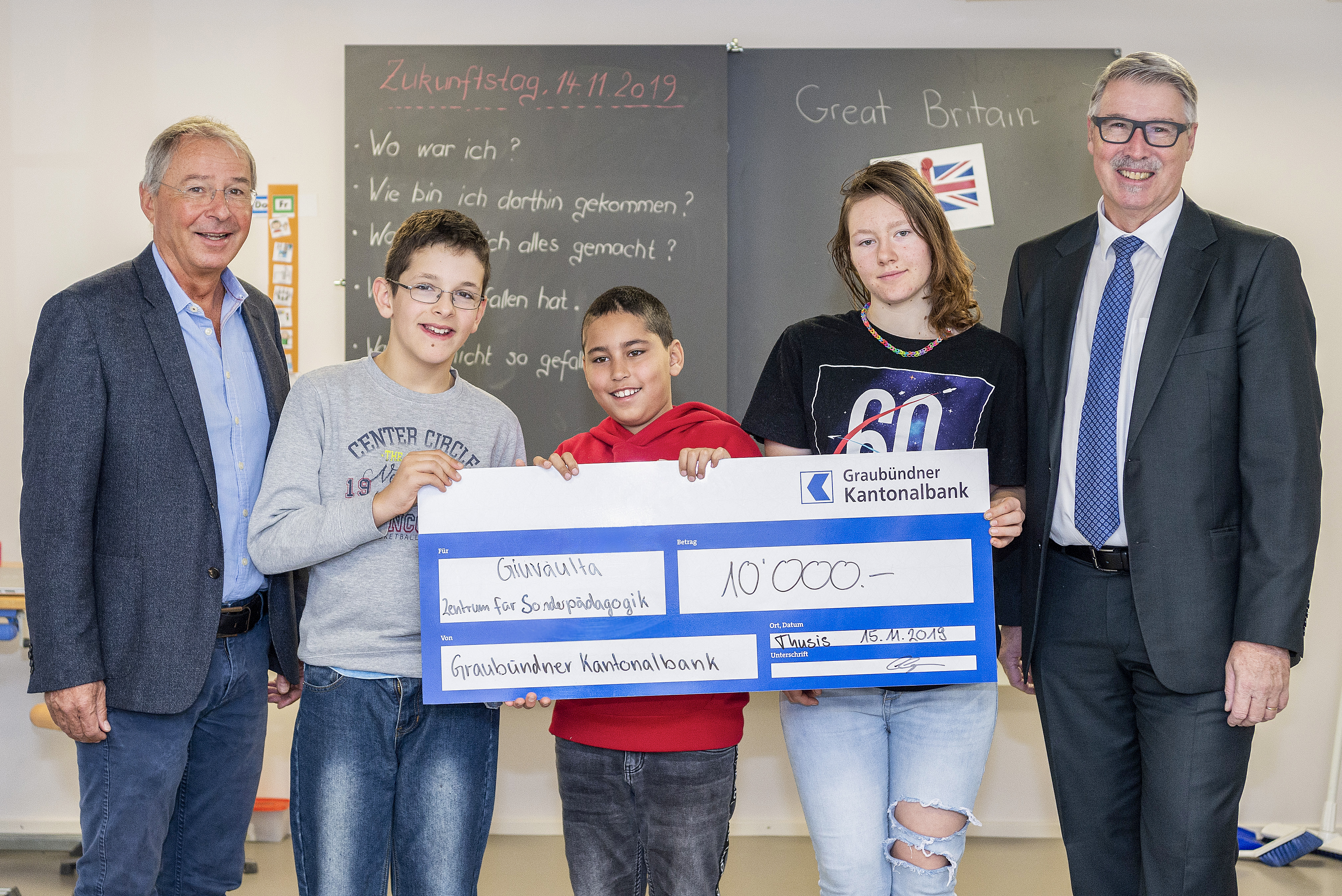 Hubert Kempter, Geschäftsleiter des Zentrums für Sonderpädagogik GIUVAULTA, freut sich sehr über die Spende der GKB: «Spendengelder sind für uns das ‚Salz in der Suppe‘. Viele Projekte, spezielle Anschaffungen, kleine und grosse Wünsche, können nicht mit Geldern der öffentlichen Hand finanziert werden. Für diese setzen wir die erhaltenen Spendengelder ein. Die Spende der GKB werden wir für die Ergänzung und Erweiterung unseres Kletterspielplatzes beim Internat verwenden.» Das GIUVAULTA fördert und begleitet Kinder, Jugendliche und Erwachsene mit einer geistigen und körperlichen Behinderung sowie auch Menschen mit ausgeprägter Sinnes- und Wahrnehmungsbeeinträchtigung. Die Sonderschulen in Rothenbrunnen, Zernez, Pontresina und Roveredo und das Internat in Rothenbrunnen bieten ein umfassendes und vielfältiges Angebot. Zudem begleitet das GIUVAULTA über 100 Kinder, die im Rahmen der integrierten Sonderschulung die Schule in ihrem Dorf besuchen, und führt fünf Wohngruppen.