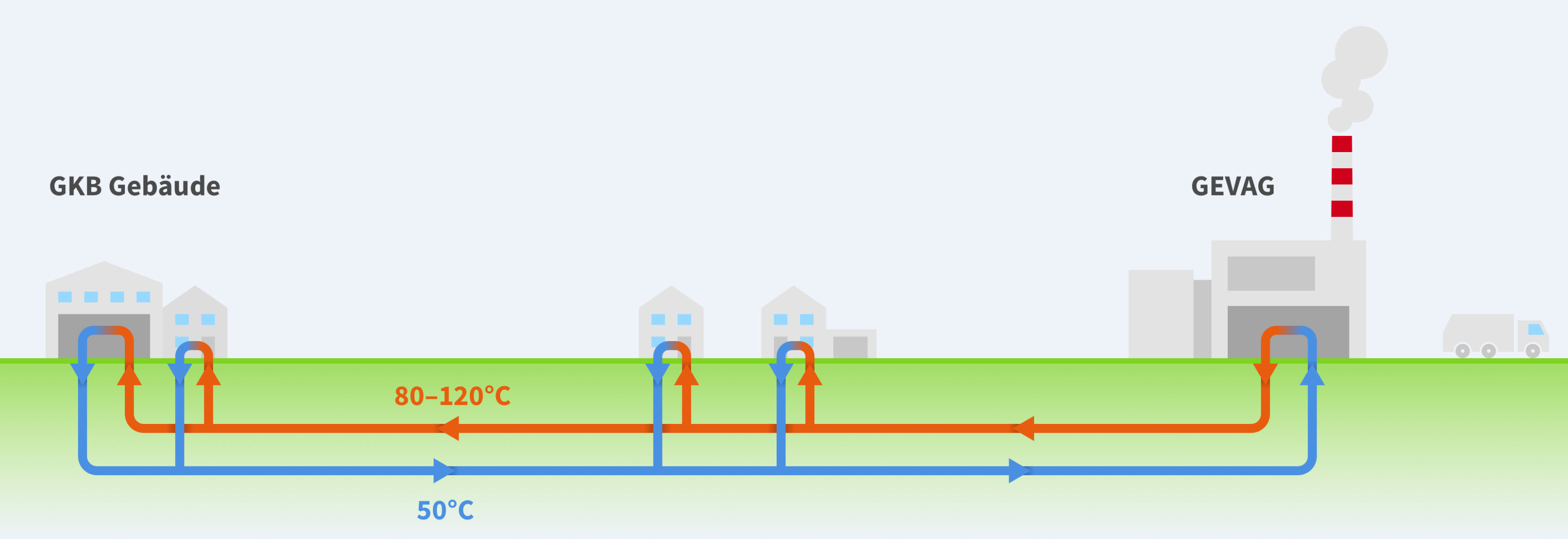 Mit dem Ende der maximalen Lebensdauer der bisherigen Heizsysteme entschied sich die GKB aufgrund ökonomischer und ökologischer Kriterien für eine Zusammenarbeit mit der Fernwärme Chur AG. Diese leitet die Abwärme der Kehrichtverbrennungsanlage GEVAG von Trimmis nach Chur. Künftig nutzt die Bank die hochwertige, ökologische Energie zur Wärmeversorgung ihres Gebäudeparks zwischen Engadinstrasse und Postplatz. Dazu Thomas Fischli, Leiter Infrastruktur bei der Graubündner Kantonalbank: «Unser Ziel ist es, den ökologischen Fussabdruck der GKB kontinuierlich zu reduzieren. Wir wollen damit zu den nachhaltigsten Banken der Schweiz gehören und unsere gesellschaftliche Verantwortung wahrnehmen.»