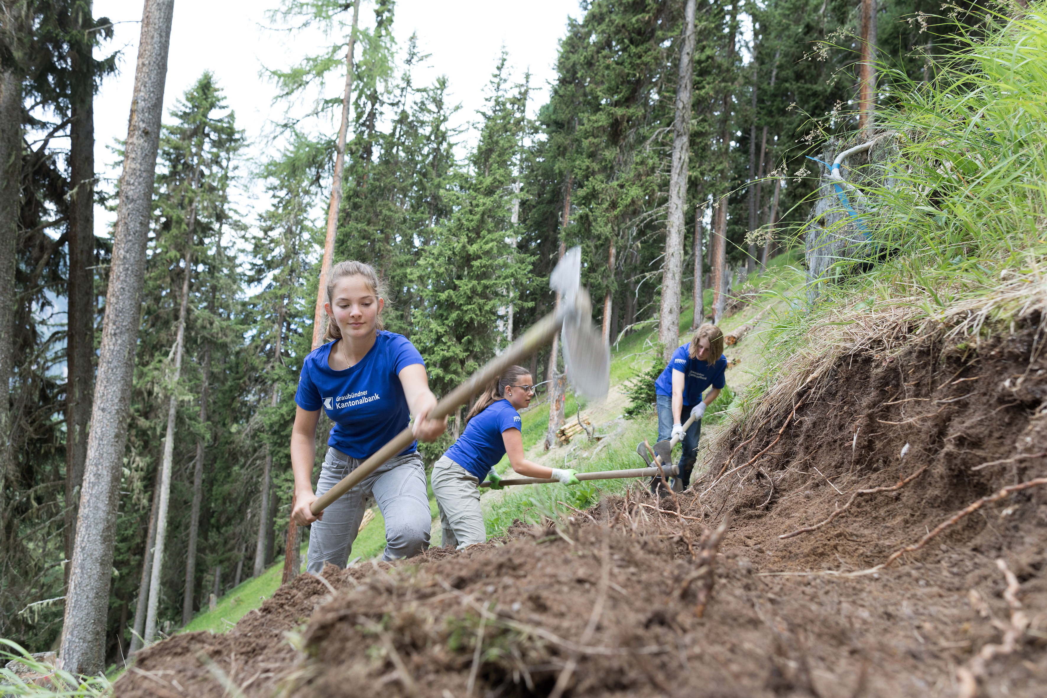 Zum siebten Mal bot die Graubündner Kantonalbank die Sommereinsätze im Bergwald an. Rund 120 Jugendliche hatten sich für einen Sommerjob in Chur, Ilanz, Klosters und Bergün beworben. «Sinnvolle Sommerjobs sind heutzutage rar. Mit dem GKB Bergwaldprojekt bieten wir Jugendlichen tolle Erlebnisse und eine Verdienstmöglichkeit während den Sommerferien an. Zugleich engagieren wir uns als Bank für Natur und Umwelt», sagt Alexander Villiger.