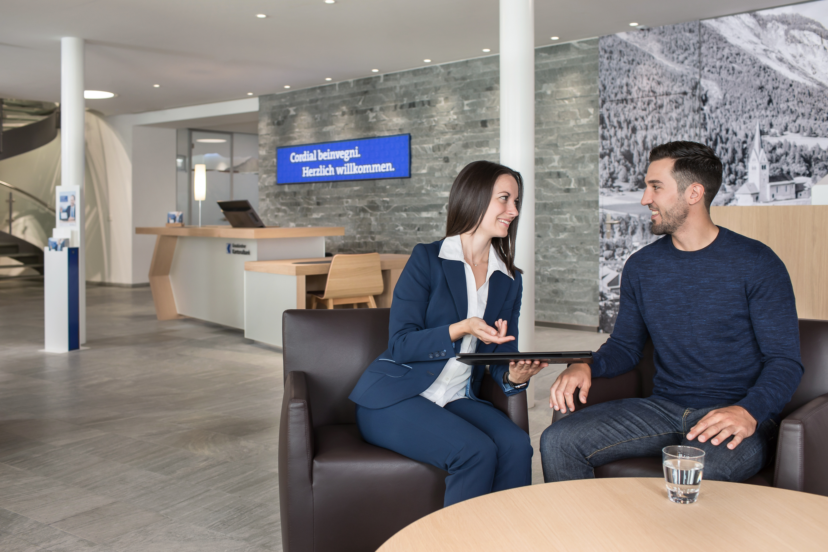 Damian Jensky und sein Team bieten weiterhin sämtliche Bankdienstleistungen an. Dazu gehören Anlageberatung und Vermögensverwaltung sowie Finanzierungen und Vorsorge. Der neue Regionalsitz kommt jedoch ohne klassische Schalter aus. Damit kann die GKB die frei werdenden Kapazitäten – ohne Abbau beim Personal – in diskreter und angenehmer Atmosphäre gezielter in der Beratung einsetzen. Die Berater am Empfang bieten weiterhin einfache Geschäfte wie Kartenbestellungen und Zahlungen an. «Dank dem neuen Filialkonzept sind wir noch näher bei unseren Kundinnen und Kunden und haben mehr Zeit für individuelle Anliegen», freut sich Damian Jensky, Leiter Region Domat/Ems.