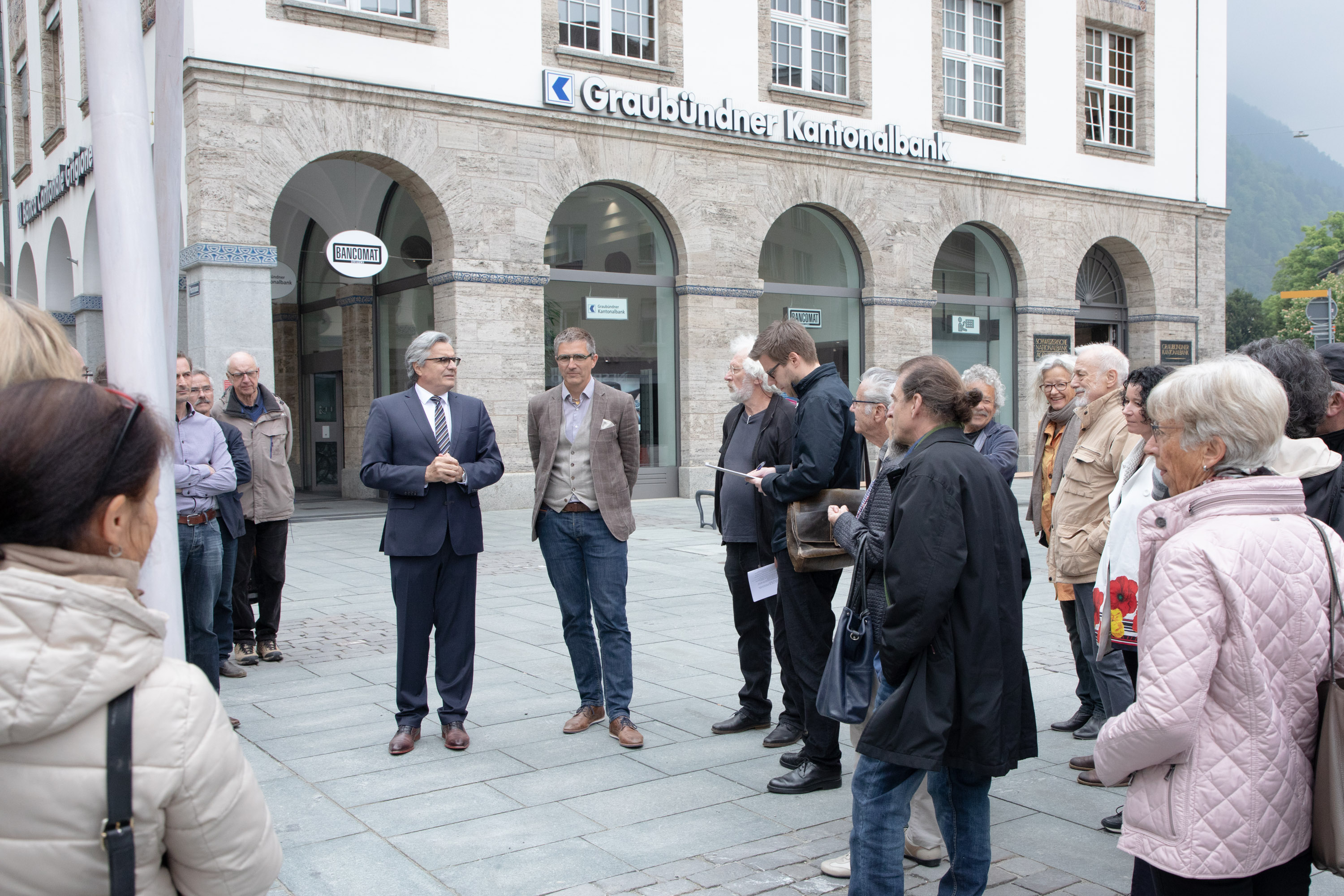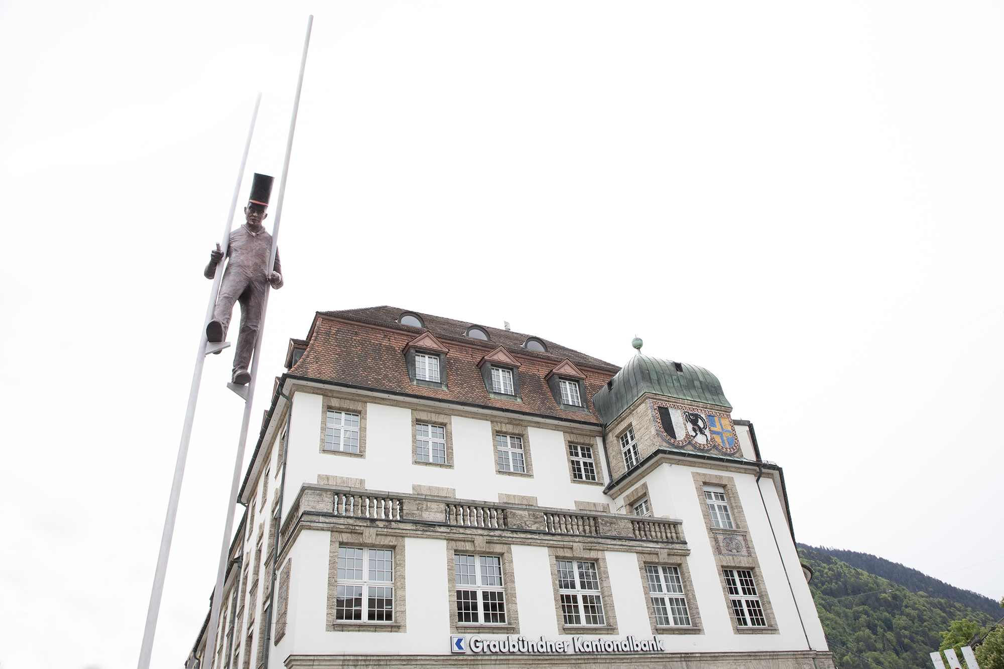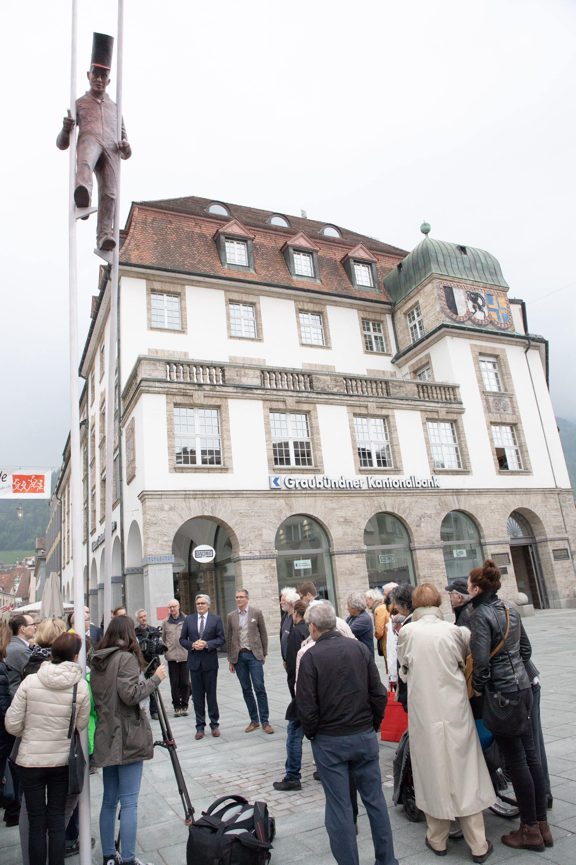 Die Skulptur von Robert Indermaur prägt künftig das Erscheinungsbild des Postplatzes in Chur. Die meterhohe Statue wurde im Beisein von Vertretern des Churer Stadtrates, der GKB und des Künstlers der Öffentlichkeit übergeben. «Seit rund fünfzig Jahren unterstützen wir im Rahmen unseres Engagements das kreative Schaffen im Kanton», erklärte Alois Vinzens, CEO der Graubündner Kantonalbank. Ein solches Kunstwerk vor dem Hauptsitz der Bank zu haben, freue ihn daher ausserordentlich.