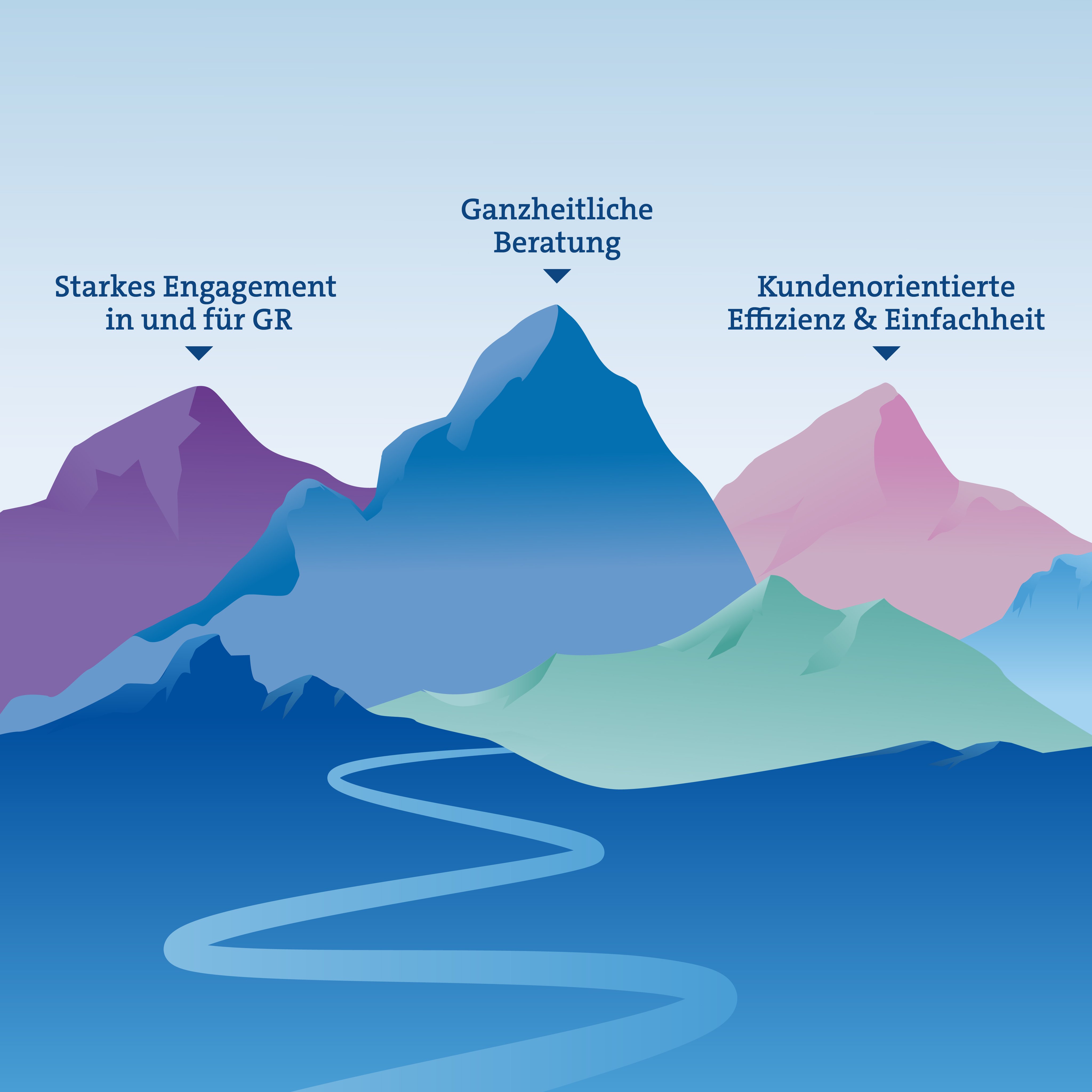 Mit der Strategie 2026-2030 bauen wir auf Bewährtem auf, passen uns aber flexibel an die technologischen und gesellschaftlichen Veränderungen an. Sie hilft uns, die Chancen der neuen Arbeitswelt und neuer Technologien zu nutzen. Ziel ist eine erstklassige ganzheitliche Beratung in allen Lebenslagen und Firmenphasen, starkes Engagement in und für Graubünden sowie Effizienz und unternehmerische Fitness.