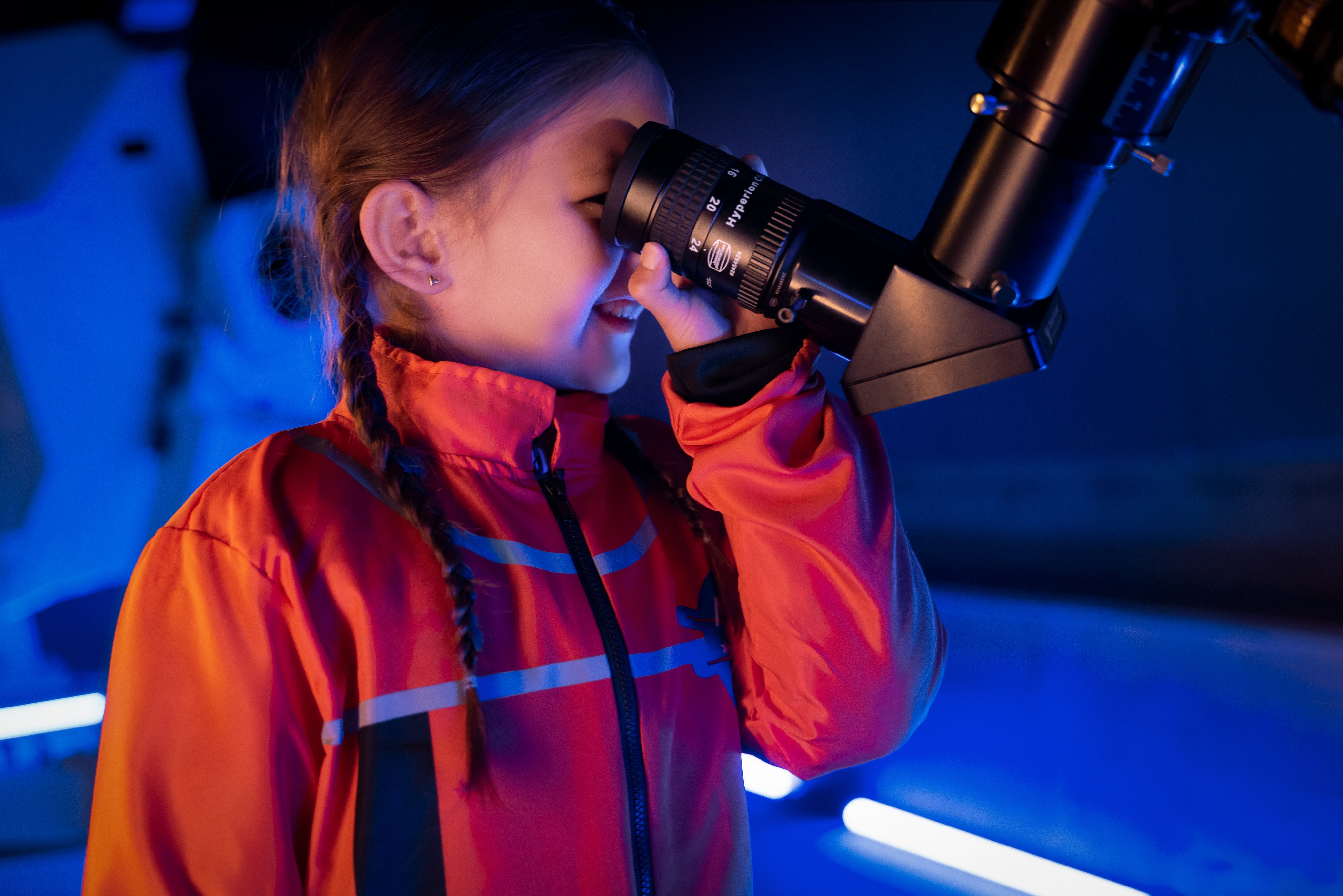 Ein Kind schaut in eine Fernrohr.