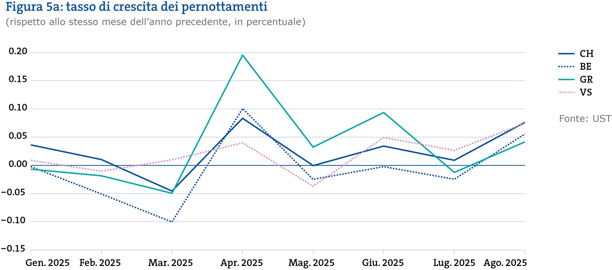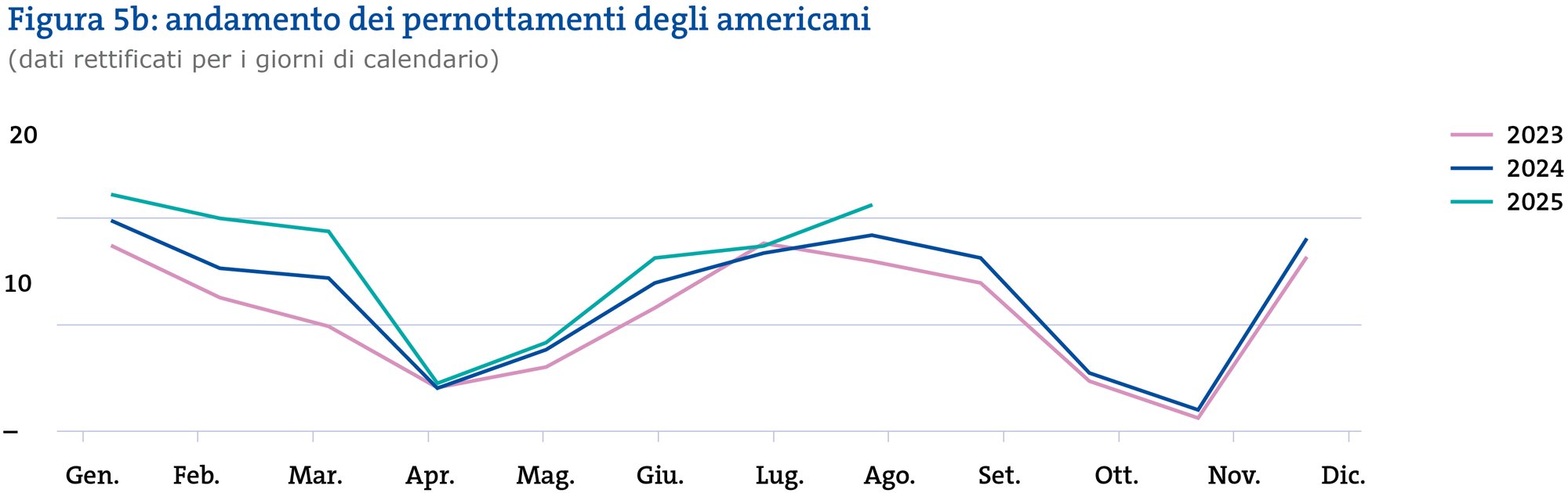 Dopo un inizio modesto nel primo trimestre, da aprile – ad eccezione di luglio – il numero di pernottamenti rettificato per i giorni di calendario è superiore a quello dei corrispondenti mesi dell’anno precedente. Agosto ha raggiunto il valore più alto dal 2022, superato solo dal 2021, un anno straordinario a seguito della pandemia.