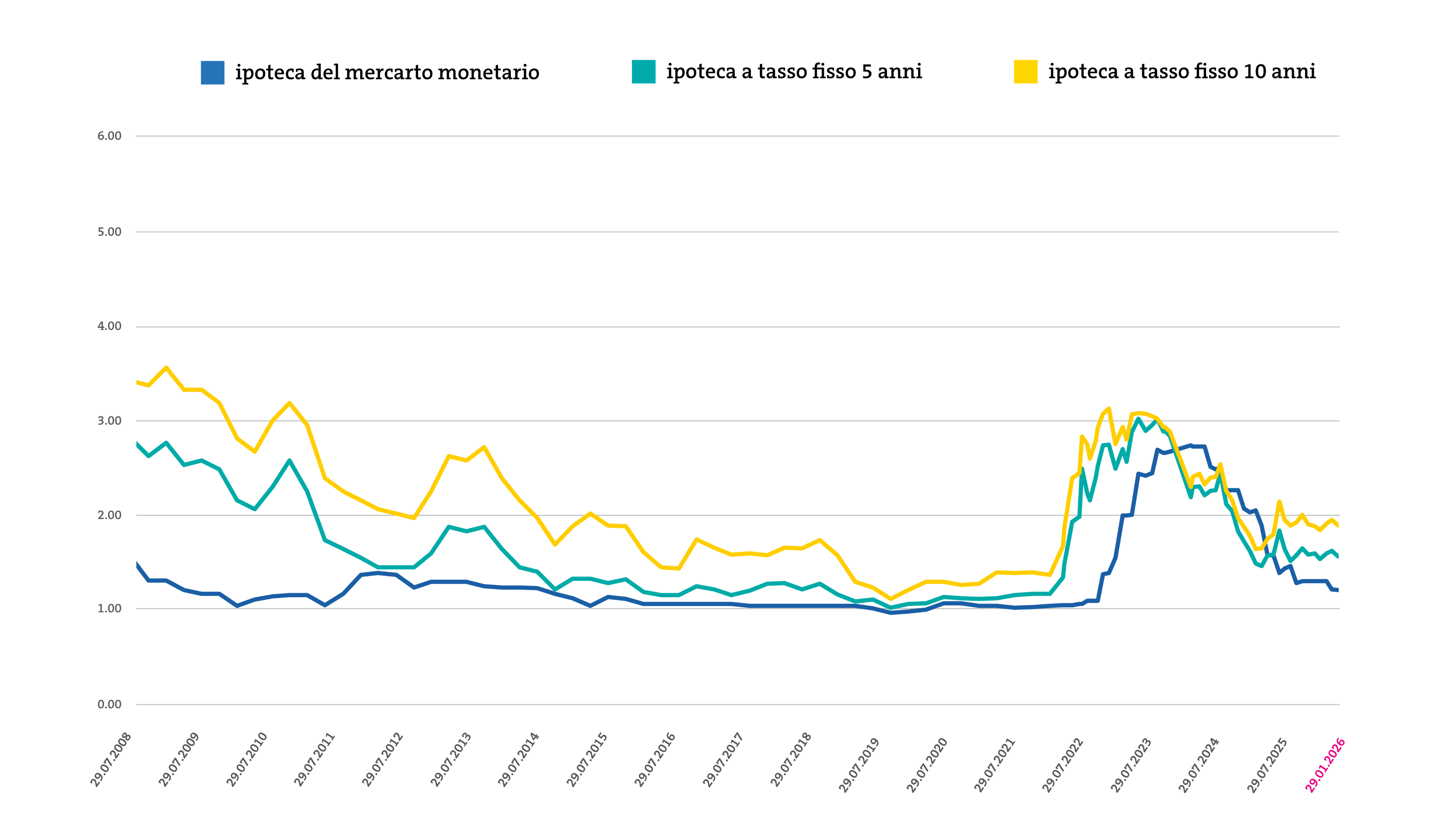 Con il 2,1% l’inflazione nell’eurozona è vicina all’obiettivo della Banca centrale europea (BCE). Di conseguenza, anche a settembre le autorità monetarie hanno lasciato invariati i tassi guida. Il tasso sui depositi è quotato al 2,0% e quindi potrebbe essere vicino al tasso di equilibrio. Valutiamo pertanto la politica monetaria della BCE come neutrale. Per il primo trimestre del 2026 prevediamo una crescita contenuta e un rincaro intorno al valore target della BCE, a fronte di tassi guida invariati.