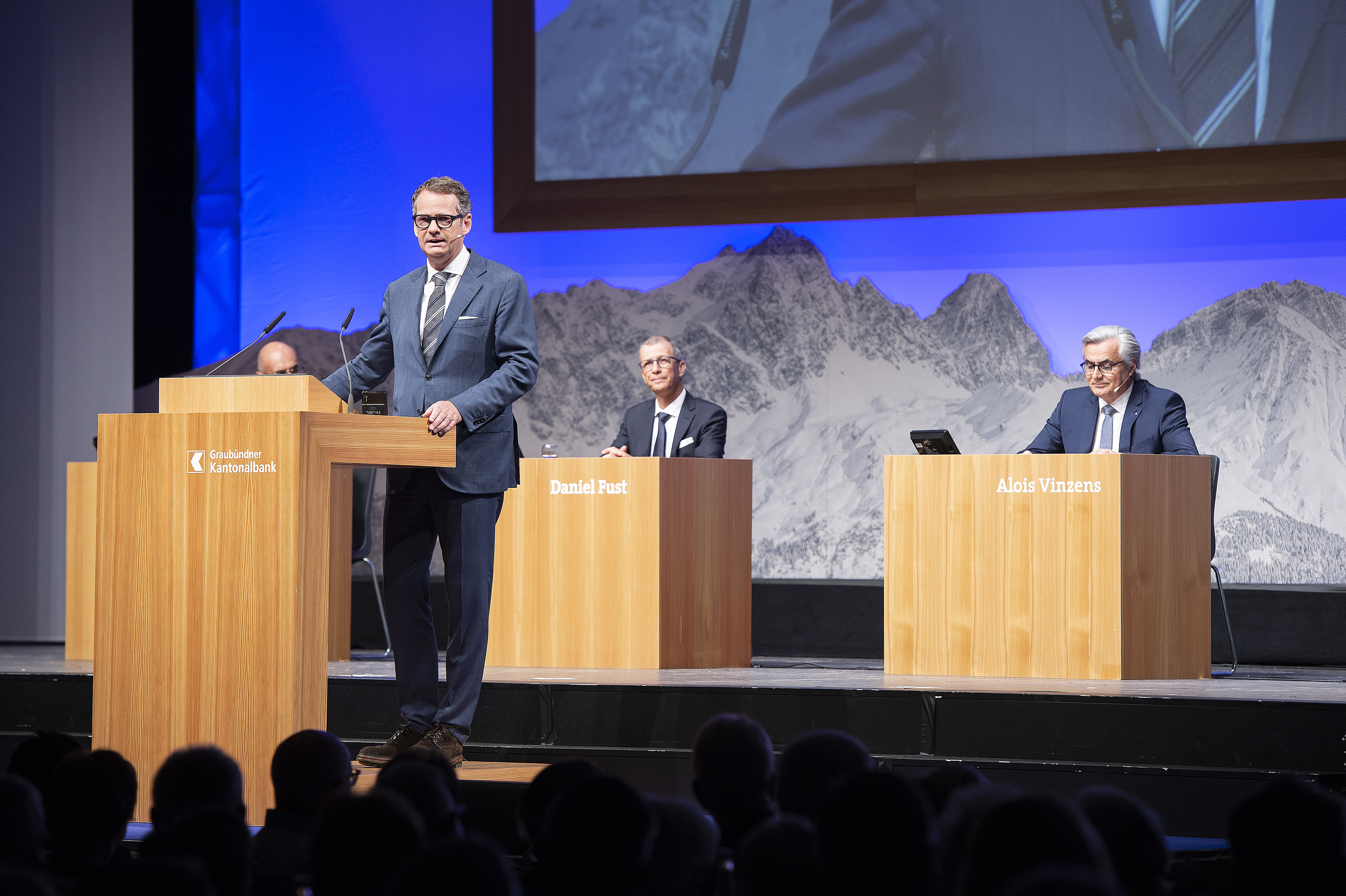 Al termine degli appuntamenti ufficiali il presidente della Banca Peter Fanconi ha salutato il CEO Alois Vinzens. A fine settembre, dopo circa 17 anni, Alois Vinzens consegnerà la gestione operativa della BCG a Daniel Fust. Fanconi ha espresso parole di apprezzamento per la sua lunga carriera e per l'eccellente lavoro svolto per la BCG. «Sotto la direzione di Alois Vinzens, la BCG è diventata una banca moderna e digitale. Il CEO l'ha infatti modellata con visione e lungimiranza», ha affermato Fanconi, sottolineando anche il senso pratico e l'affabilità che lo hanno sempre contraddistinto. Daniel Fust, membro della Direzione generale dal 2012, assumerà la gestione operativa della BCG dal 1° ottobre 2019.