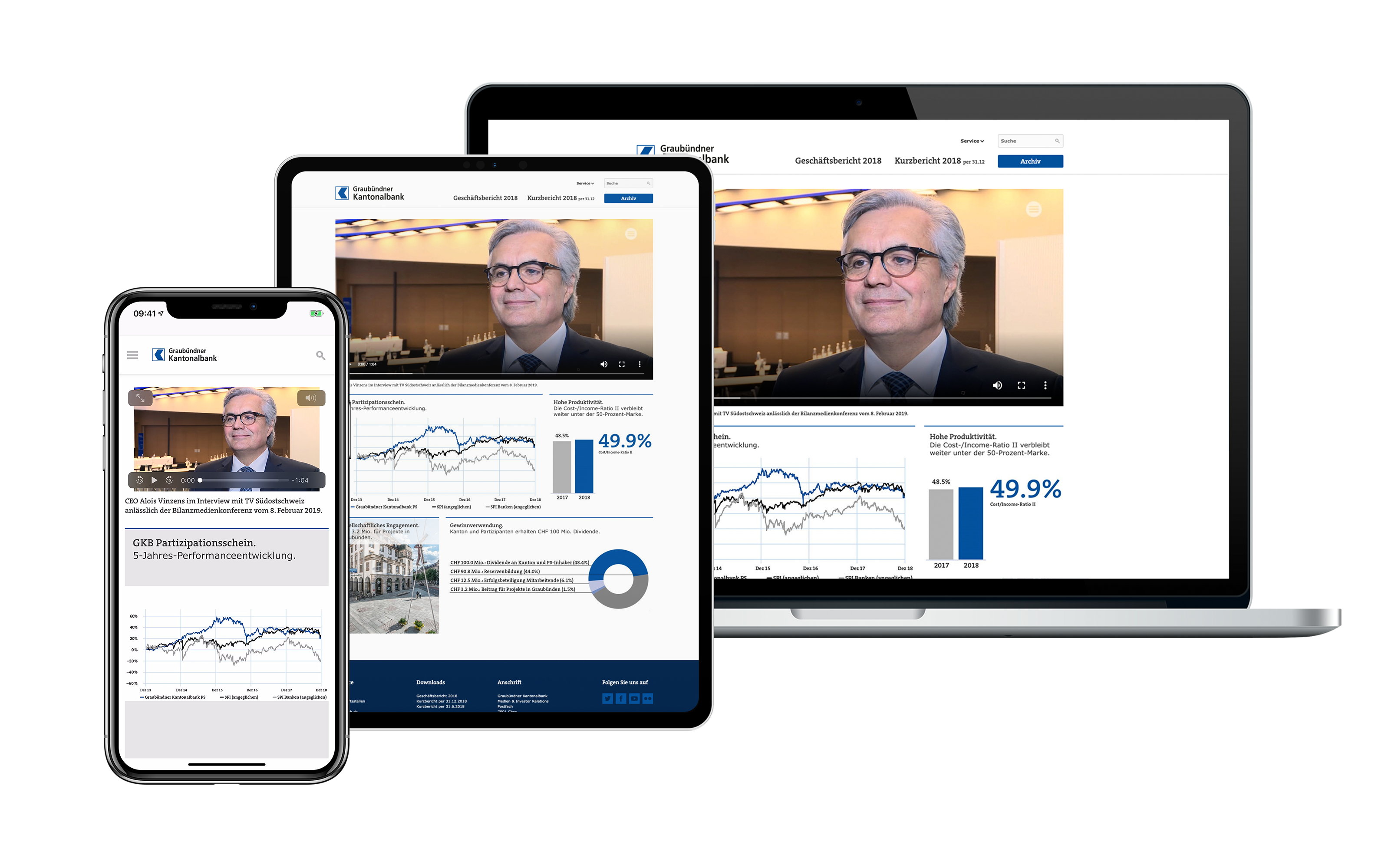 Per la prima volta la BCG pubblica il suo rapporto di gestione completamente in forma digitale. Concepito a misura dei destinatari, allestito in forma moderna, grazie al design responsivo si può leggere comodamente su ogni genere di dispositivo. Rinunciando alla versione cartacea la Banca contribuisce inoltre a ridurre il proprio consumo di carta.