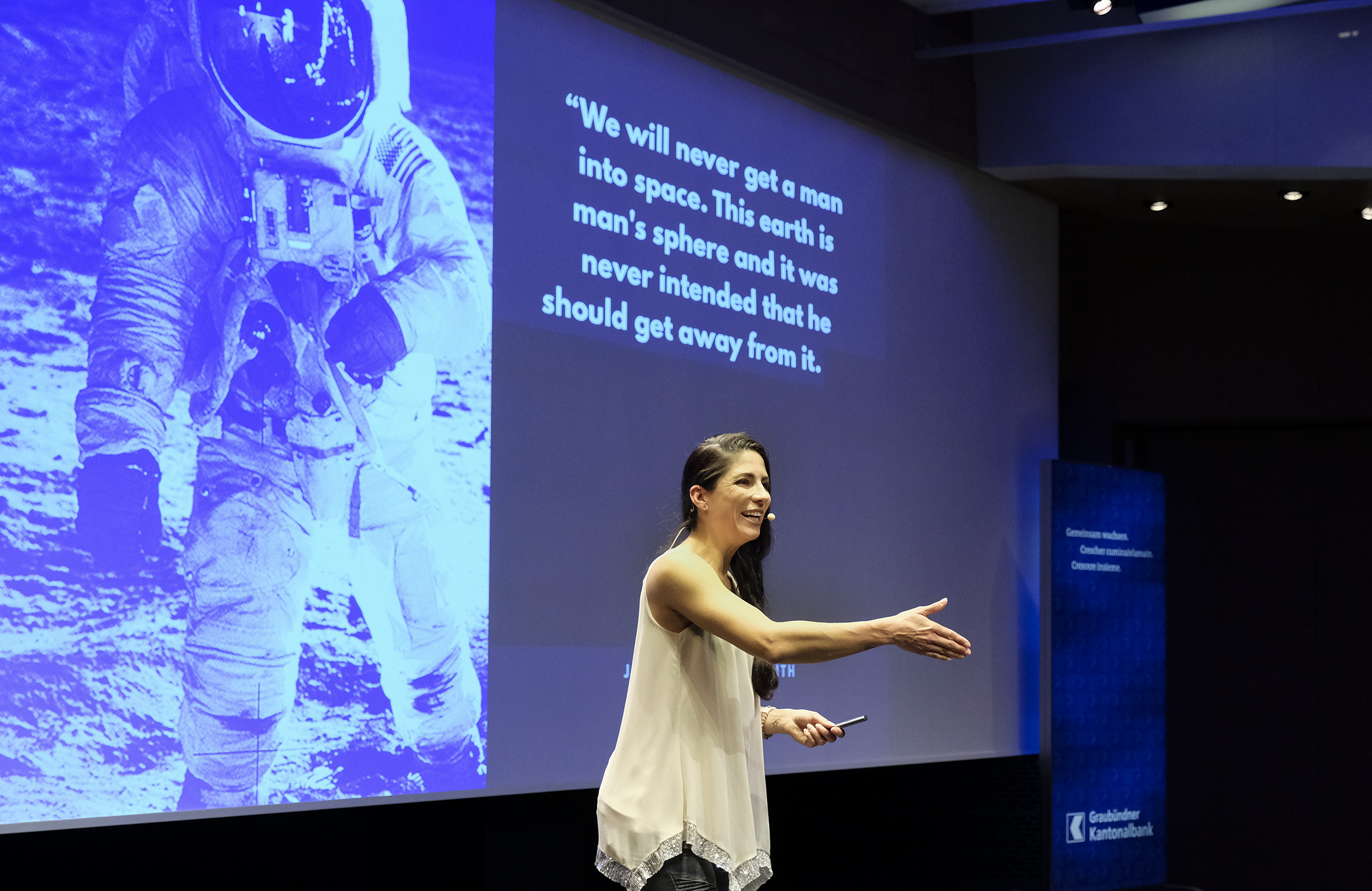 La settima edizione dell'evento di networking «Womenomics», svoltasi nel GKB AUDITORIUM di Coira, è stata dedicata al tema dell'eccellenza raggiunta grazie al rallentamento. Nell'odierna società incentrata sulla performance trovano sempre meno spazio qualità come la pazienza e lo zelo. Gli errori non sono tollerati, sebbene si verifichino evidentemente ogni giorno.